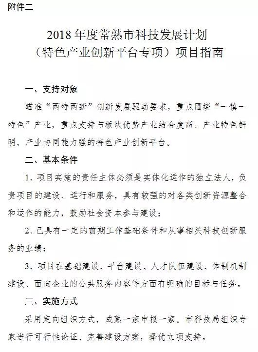 2、2018年度常熟市科技發(fā)展計(jì)劃(特色產(chǎn)業(yè)創(chuàng)新平臺專項(xiàng))項(xiàng)目指南