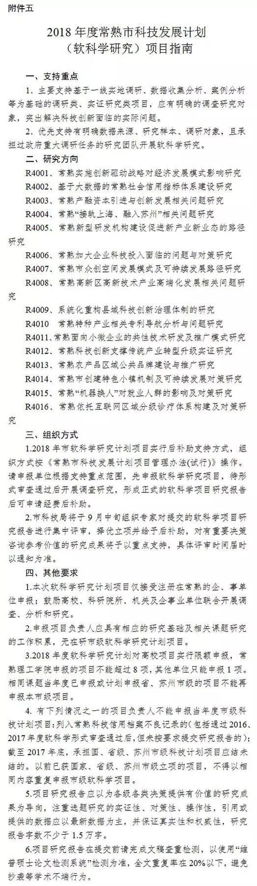 5、2018年度常熟市科技發(fā)展計(jì)劃(軟科學(xué)研究)項(xiàng)目指南