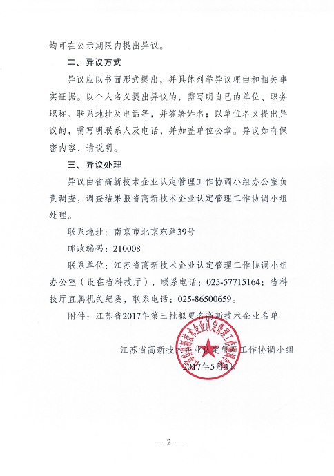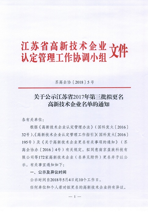 2017年江蘇省*三批擬更名高新技術(shù)企業(yè)名單的通知
