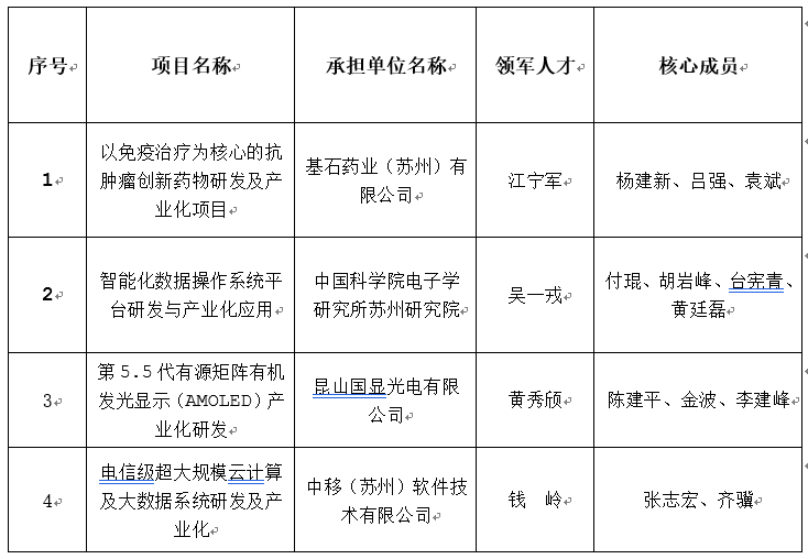 2017年*一批姑蘇創(chuàng)新創(chuàng)業(yè)領(lǐng)軍人才計劃重大創(chuàng)新團隊擬立項候選項目
