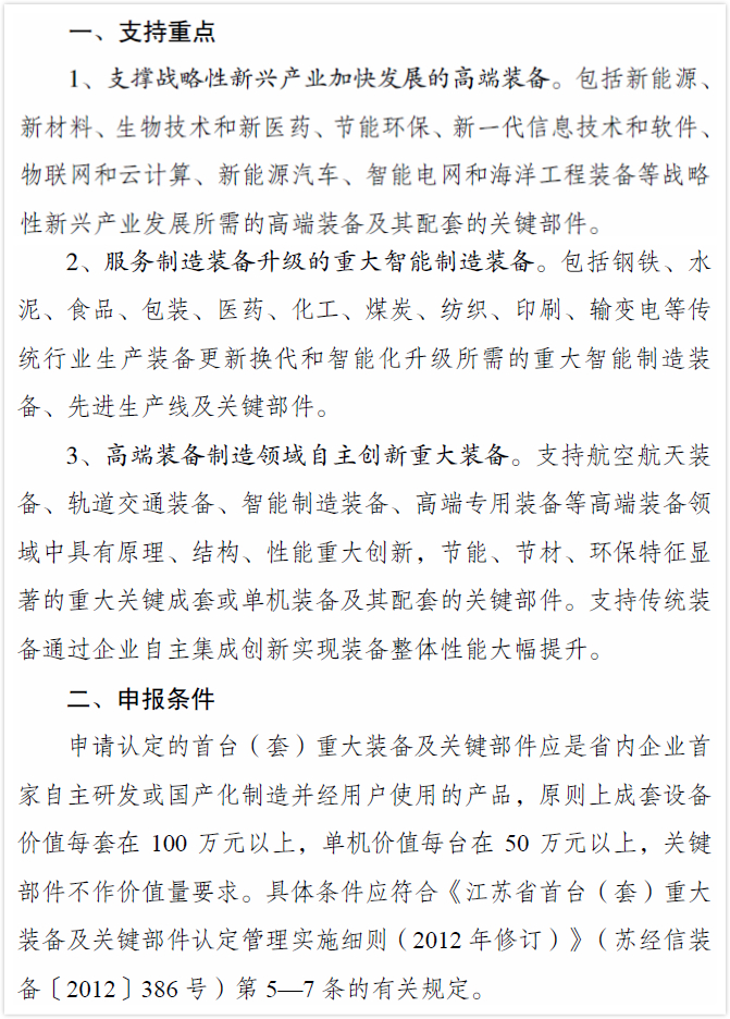 (三)江蘇省首臺(套)重大裝備及關(guān)鍵零部件認(rèn)定
