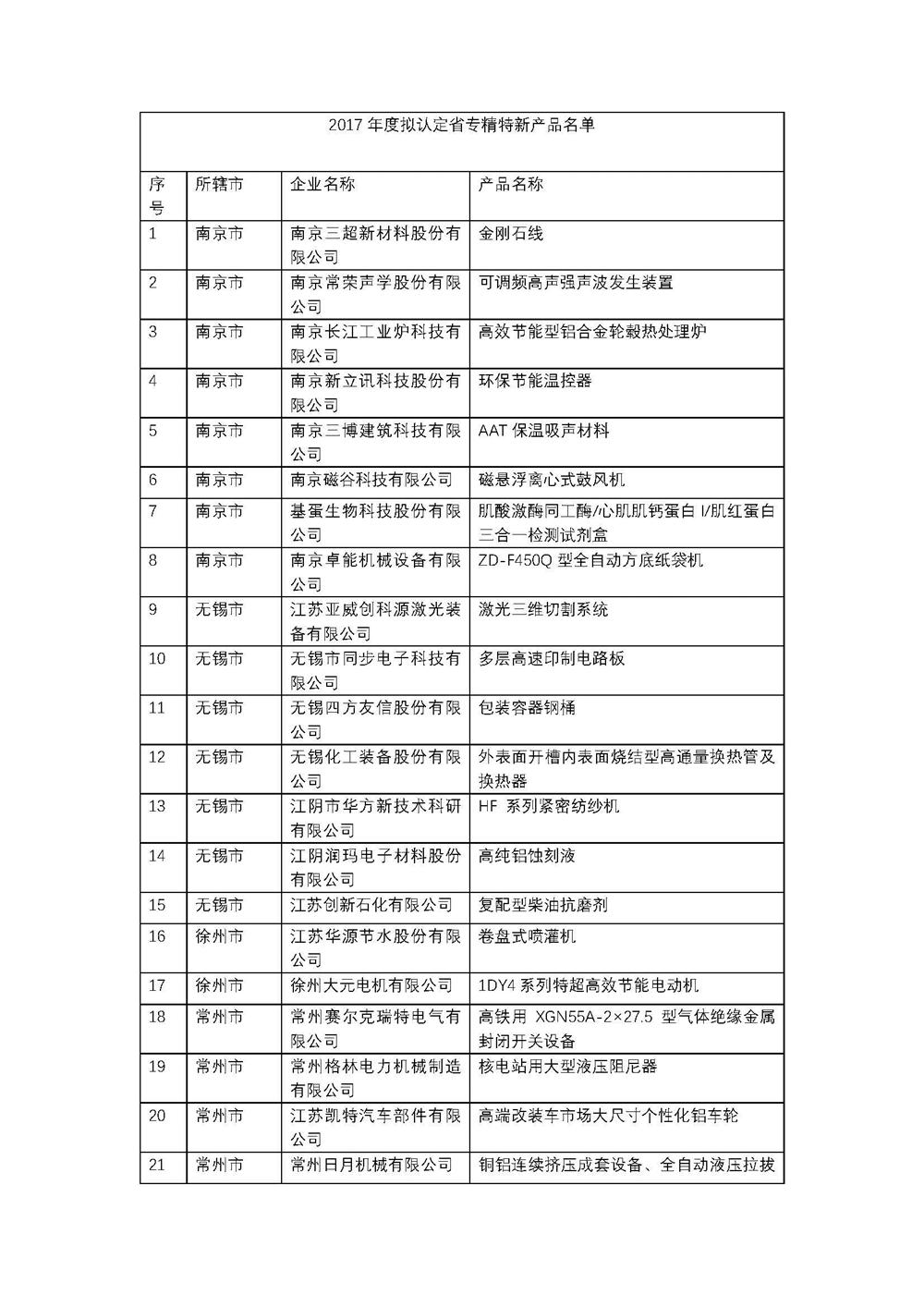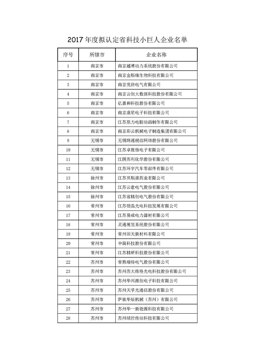 關(guān)于2017年度江蘇省科技小巨人企業(yè)和專精特新產(chǎn)品擬認(rèn)定名單的公示