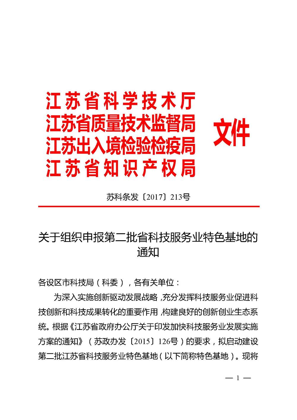 關(guān)于組織申報*二批江蘇省科技服務(wù)業(yè)特色基地的通知